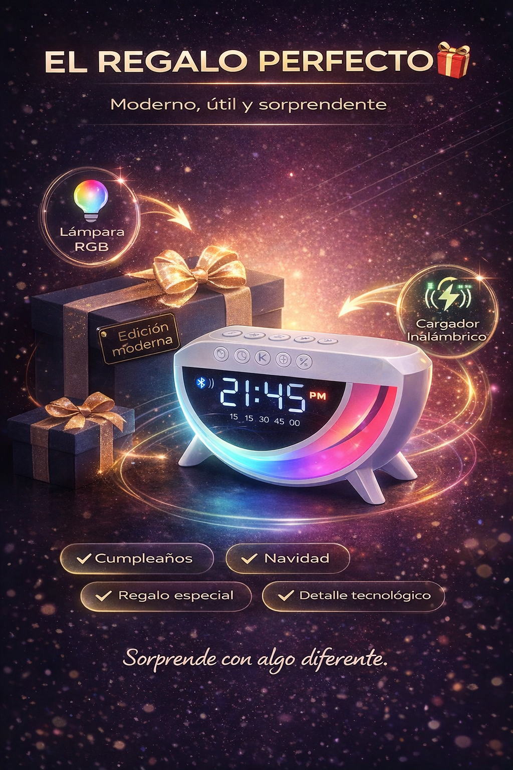 Carga tu celular sin cables, disfruta tu música y despierta con estilo.